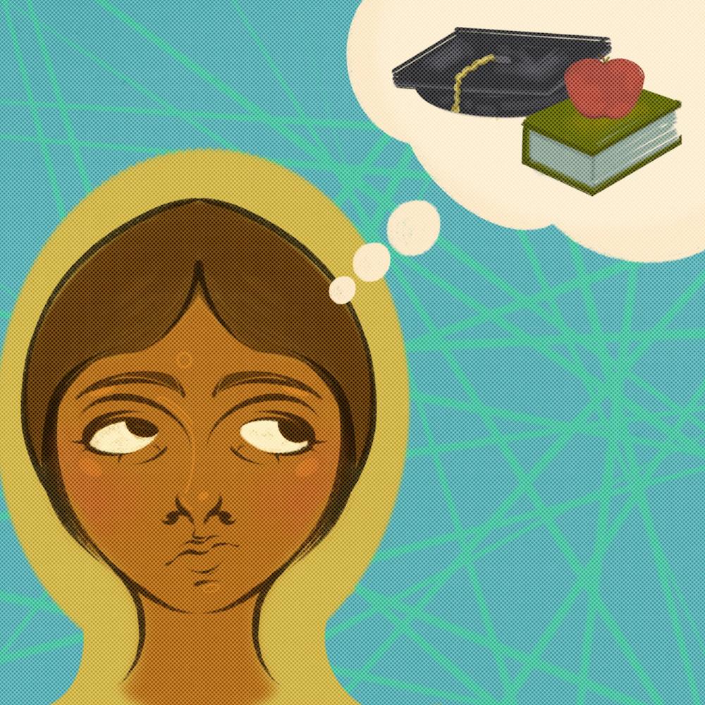 The graphic depicts a high school student contemplating education plans for the future. Western Washington University offers dual credit program to help high school students with future education plans. // Graphic by Kristina Mendoza