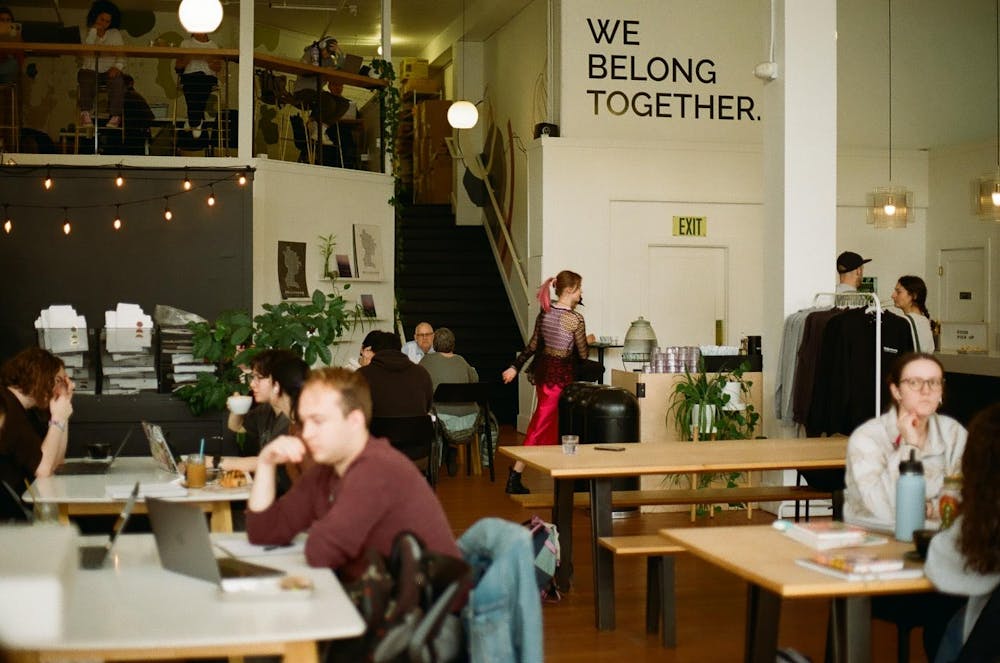 A customer sits alone at a table at Cafe Adagio on Feb. 6, 2024 in Bellingham, Wash. Solo diners can offer a brief pause in a shift often spent juggling multiple drinks and tip-driven expectations. // Photo courtesy of Griffin Rinauro