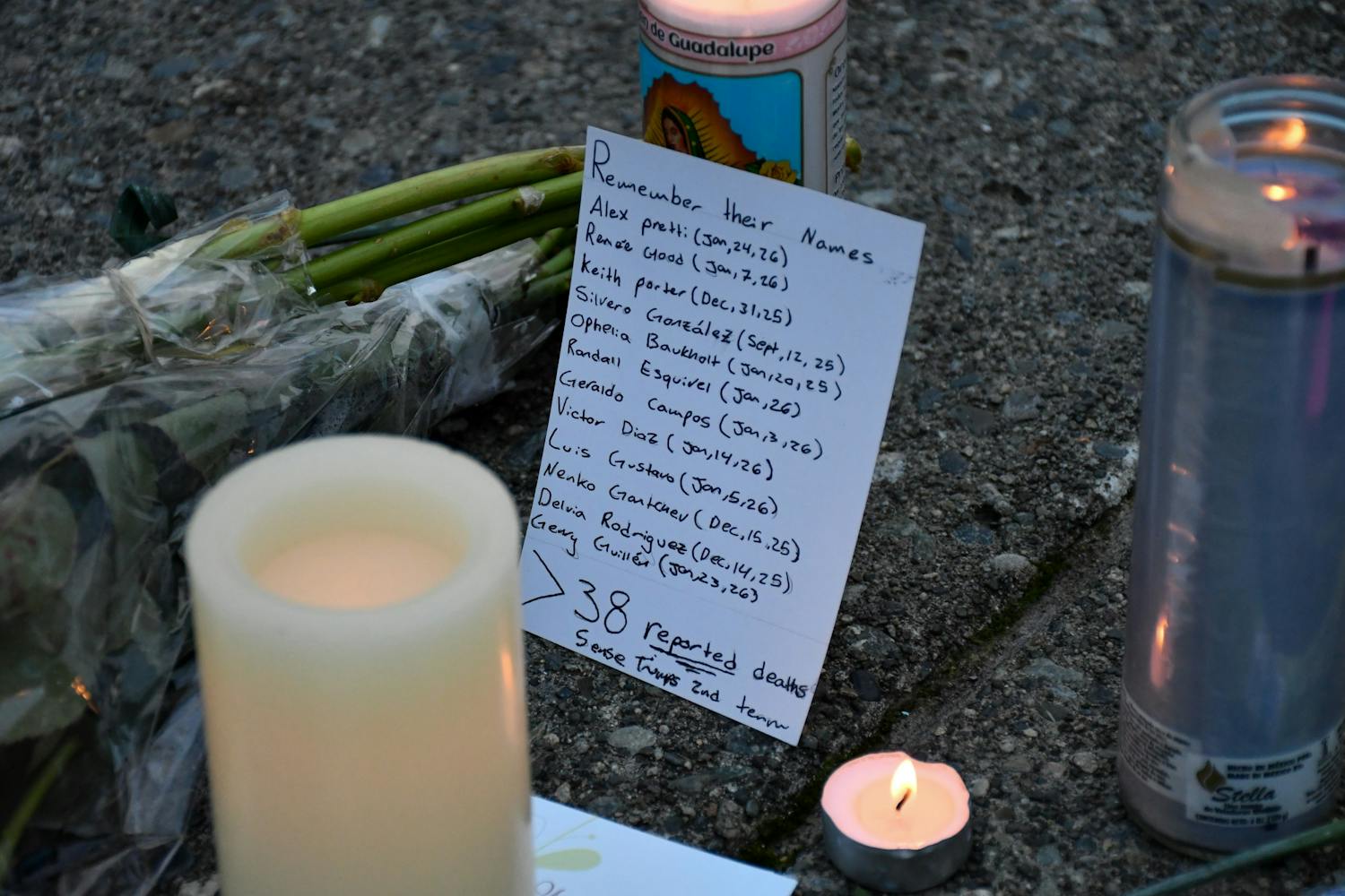 Movimiento Estudiantil Chicano de Aztlán (MEChA), a student-led activist group, organized the vigil — lighting candles, handing out flowers and setting out framed photos of the victims killed as a result of ICE violence. The event was planned in the wake of increased ICE presence around the country, resulting in questions about community-wide safety.