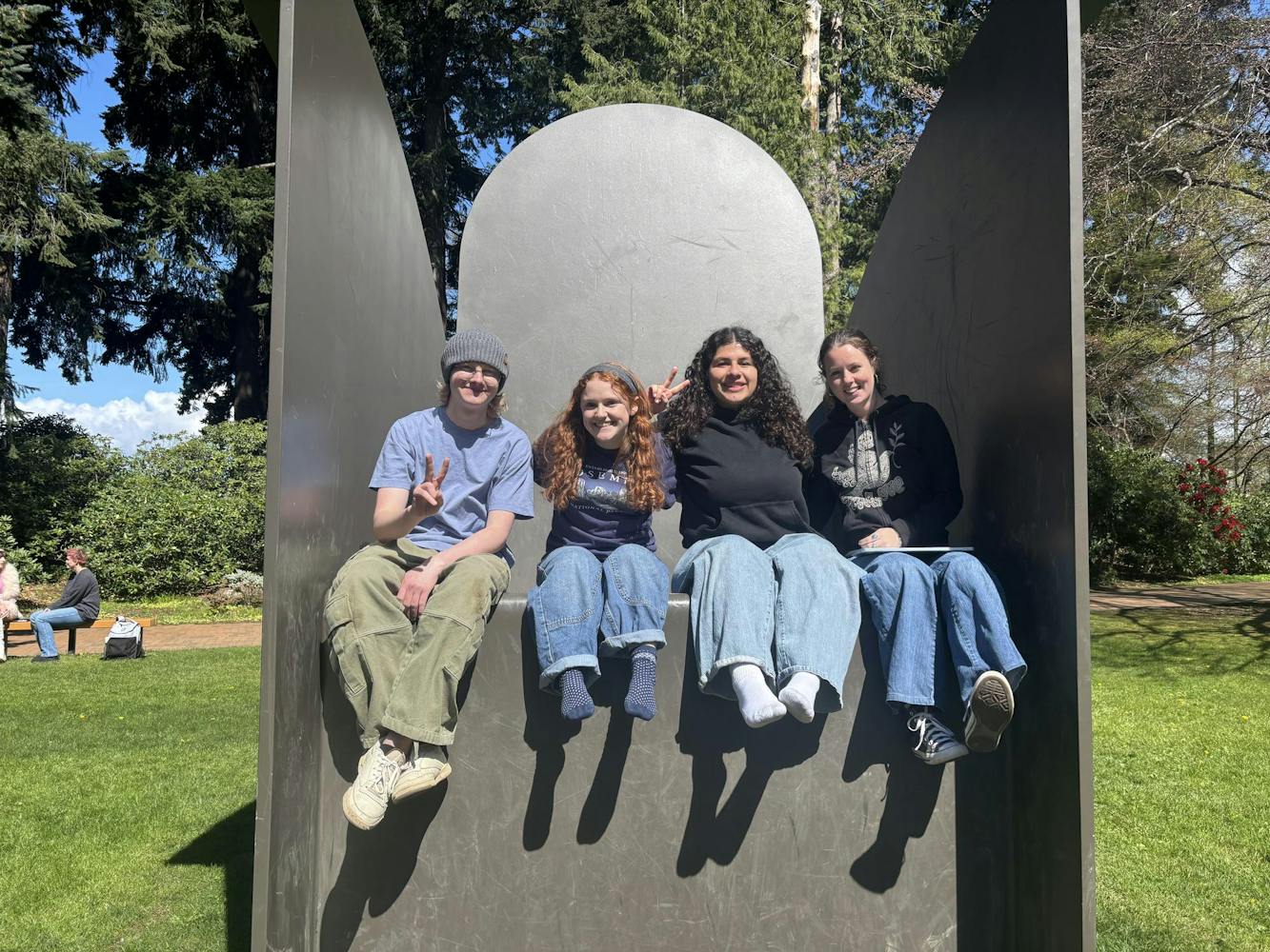 The sun has returned, and with it the spirits of Western Washington University students have lifted. Next to the Stadium Piece, colloquially known as “the stairs to nowhere,” students lay sprawled across the grass of the Communications Facility lawn with friends.
