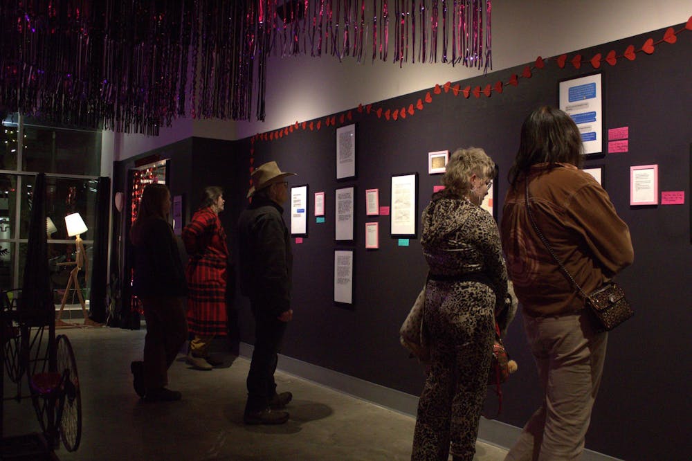 Patrons of WinkWink Boutique admire the mementos on display at the gallery in Bellingham, Wash. on Feb. 6, 2026. The patrons were present at the opening night of Crushed. // Photo by Raleigh Nolan