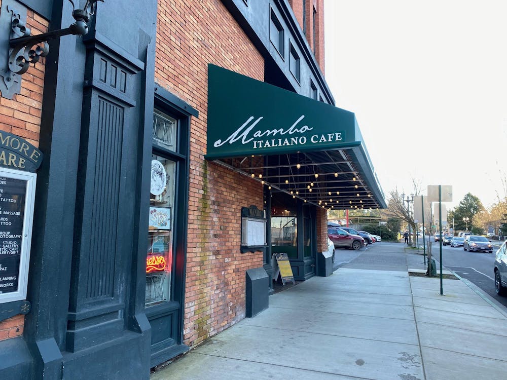 The outside of Mambo Italiano in Fairhaven on Jan. 24, 2025, in Bellingham, Wash. The cafe serves Italian cuisine made from scratch and is open seven days a week. // Photo by Sophia Raymond