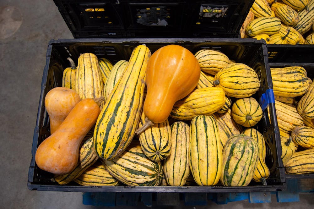 Donated squash sits in a crate at Foothills Food Bank in Maple Falls, Wash., on Nov. 6, 2025. Once sorted, it was added to the shelves for clients. // Photo by Janessa Bates