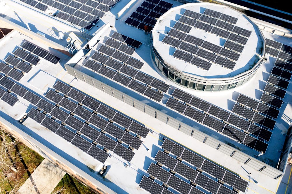A closer view of SMATE’s solar panels on Jan. 17, 2025, in Bellingham, Wash. This photo was taken by a drone. // Photo courtesy of Luke Hollister