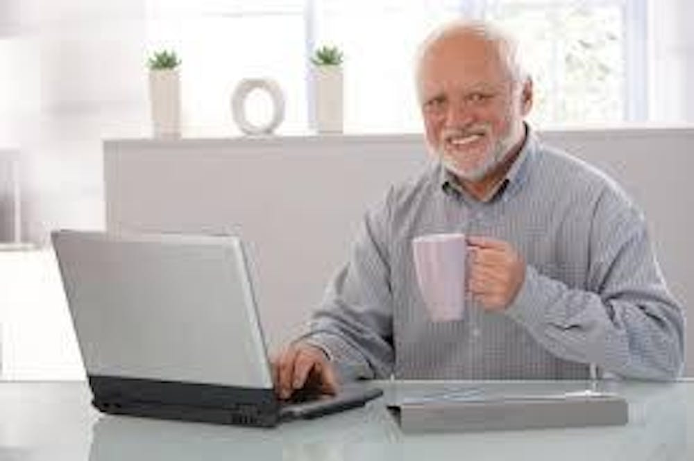 A friendly man sits at his desk with a cup of coffee. March 31, 2026. // Photo by Stock