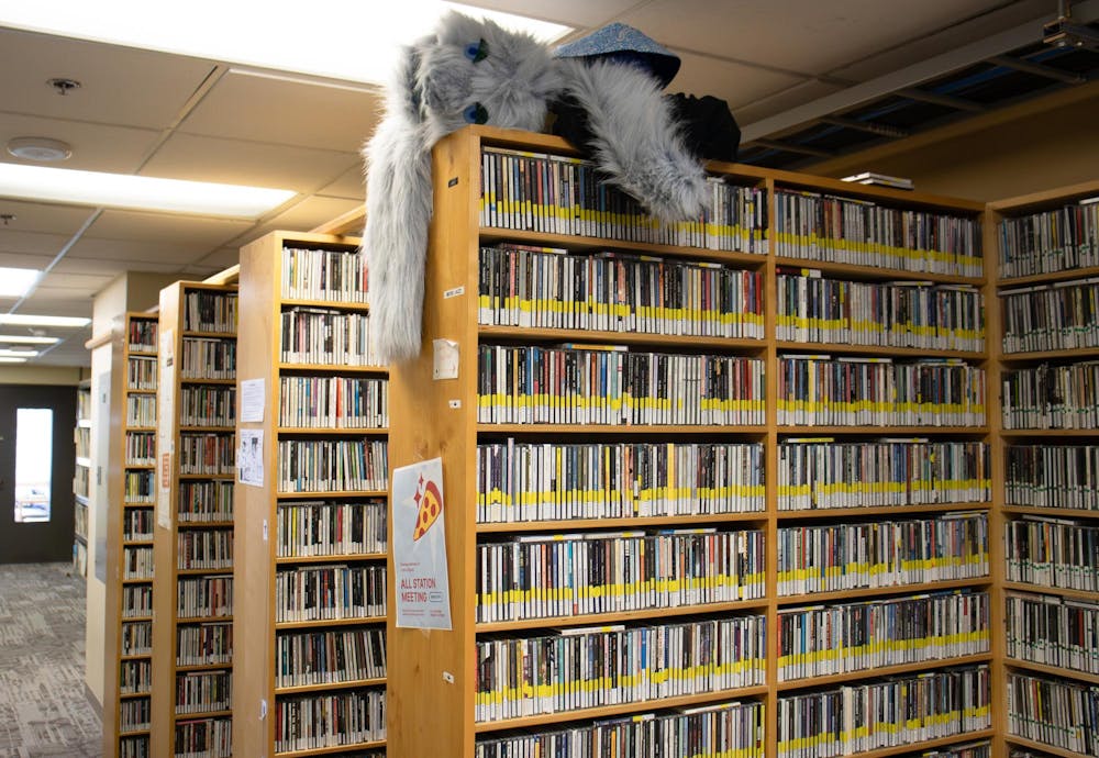 The massive CD collection in the KUGS radio station located in the Viking Union in Bellingham, Wash., on Feb. 20, 2026. Nearly all of the CDs in the studio were burned by students. // Photo by Katherine Rogers