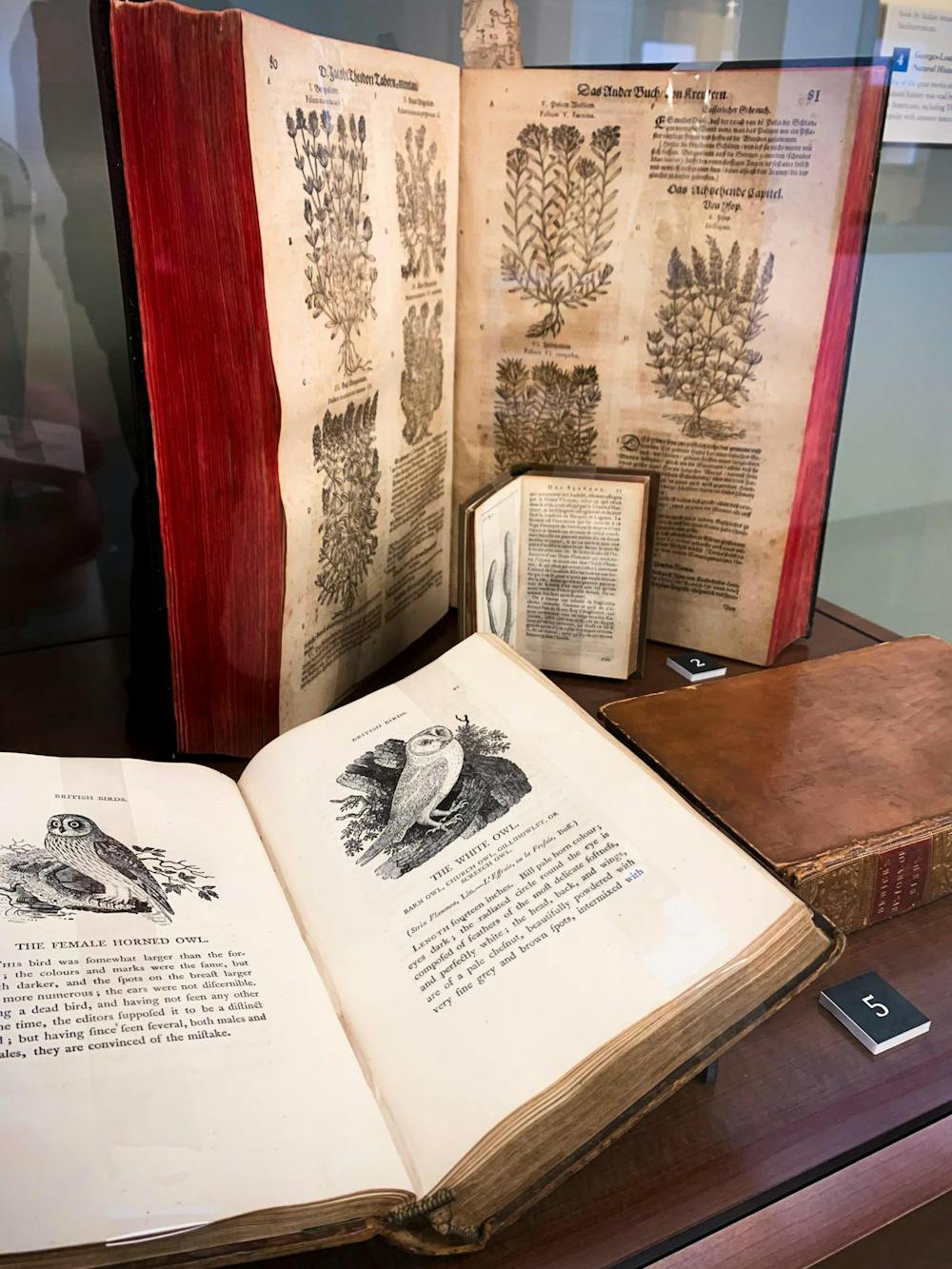 Flora and fauna enliven the pages of these centuries-old volumes of literature at the “A New Leaf” Archives & Special Collections exhibit in the Wilson Library in Bellingham, Wash. on Jan. 24, 2025. // Photo courtesy of Western Libraries Archives & Special Collections