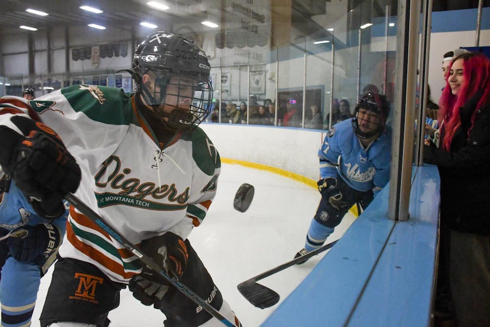 January 28Patrick Pierson (26) prepares for a puck drop during a men’s hockey game against Montana Tech on Jan. 24, 2026, at the Sportsplex Arena in Bellingham, Wash. Pierson, team captain of the Vikings, was honored on senior night. // Photo by Caitlin Grygorcewicz