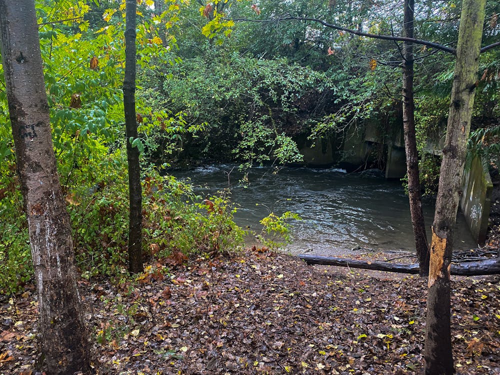 Whatcom Creek, the site of the community work party on Oct. 11, 2025, in Bellingham, Wash. The Whatcom Creek work party also focused on the restoration of salmon habitat on top of cleaning nearby trails. // Photo by Carden Mercier
