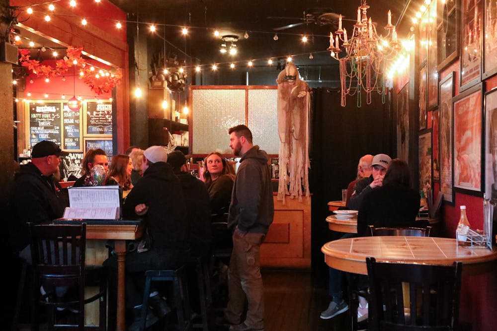 Guests enjoy Bayou On Bay’s Cajun cuisine on Feb. 13, 2025, in Bellingham, Wash. The sound of conversation fills the air as customers eat food and drink. // Photo by Jackson Kelly