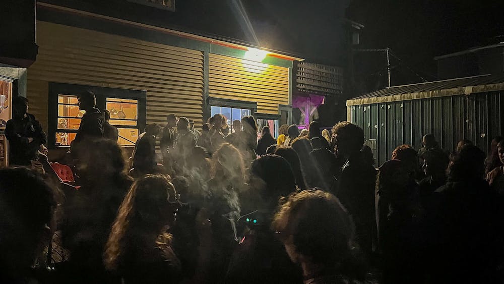 Grandma’s House attendees gather outside after a show in Bellingham, Wash., on Friday, September 26, 2025. The home has hosted hundreds of local and touring performers over the past decade. // Photo by Willow Jacobson
