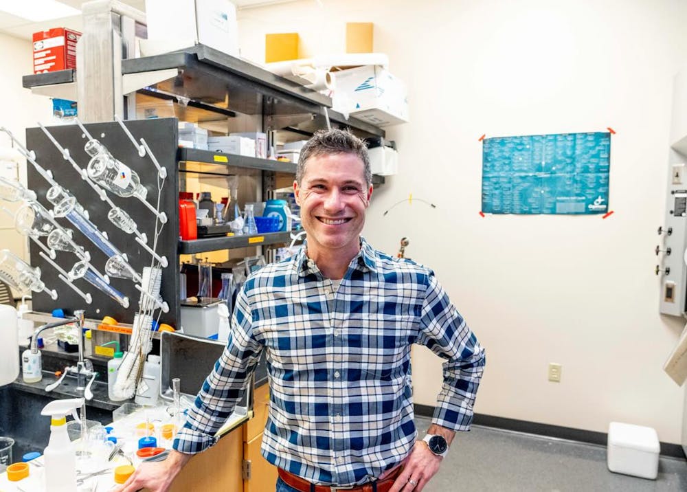 Professor Josh Kaplan in a lab at Western Washington University in Bellingham, Wash. The image was posted on the Western Instagram on Feb. 19, 2025. The National Institutes of Health awarded him a grant to continue his research in cannabis-based treatments. // Photo courtesy of Luke Hollister