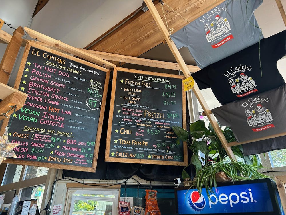 El Capitan’s food menu is pictured on Sep. 3, 2024, in Bellingham, Wash. Nearby, merch and drinks are also available for sale. // Photo by Morgan Merriam