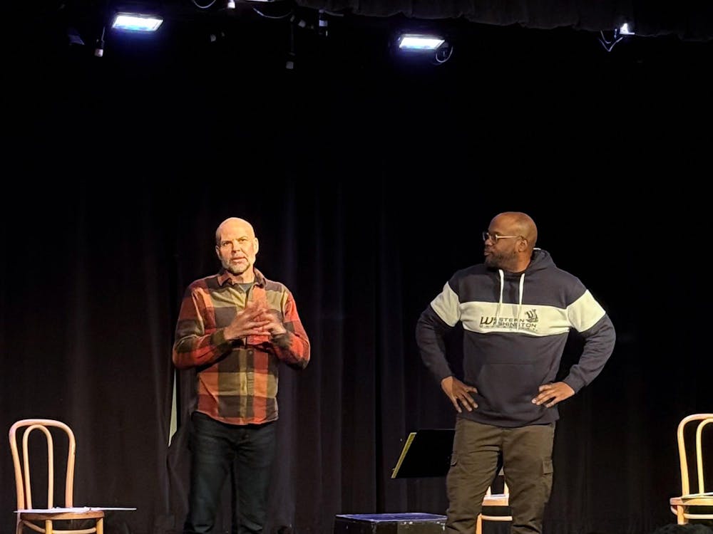 Playwright Idris Goodwin explaining the process of writing “King of the Neuroverse” and adapting it into a play during Western’s summer Test Kitchen with Professor and Theater Department Chair Rich Brown on Jan. 23, 2026. // Photo by Cody Sauter