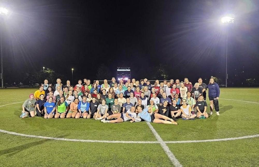 Western Women’s rugby team poses for a photo. Photo taken at Western’s Harrington Field in late September 2024. // Photo courtesy of Jenae Potter.