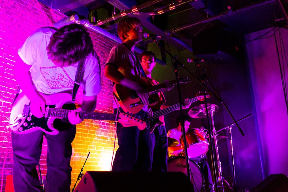 Dollarbird plays at Battle of the Bands in the Underground Coffeehouse at Western Washington University on Feb. 19, 2025. Riley McMonigle, left, earned cheers from the crowd during his guitar solo. // Photo by Natalie Jones