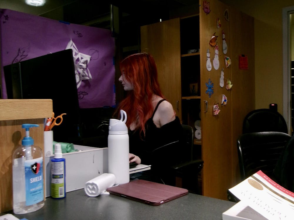Samantha Andry, working her job as a desk attendant at the Western Washington University north area front desk in Bellingham, Wash., on Jan. 18, 2026. Her job mostly involves cycling through different student residents' packages as they are delivered and making sure they go to the correct recipients. // Photo by Cody Sauter