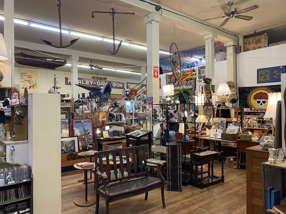 The inside of Penny Lane Antique Mall on Feb. 10, 2025, in Bellingham, Wash. There are artworks, furniture, signs and other knick-knacks displayed. // Photo by Sophia Raymond