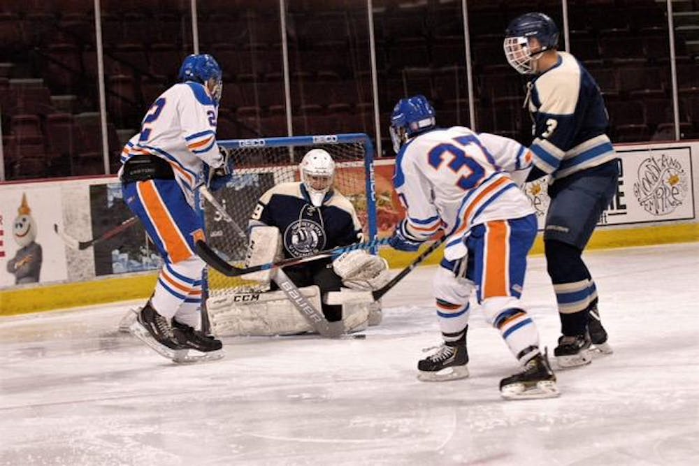 Stensland defends a goal during her Freshman year at Western in 2018. Stensland played as a goalie on Western’s hockey team. // Photo courtesy of Anna Stensland.