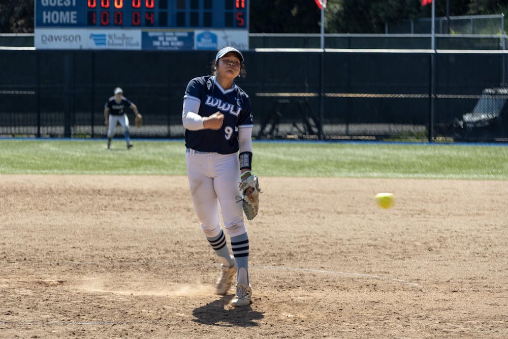 Sophomore Kaiana Kong throws a pitch on April 25 at Viking Field. Kong has been dominating with a conference-leading 1.31 earned run average across 37 appearances. // Photo by Chayton Engelson