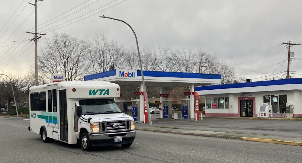 WTA Paratransit bus driving down Meridian St. in Bellingham, Wash., on Nov. 29, 2025. Paratransit is expected to increase fares from $1 to $3.// Photo by DuPree Nugent