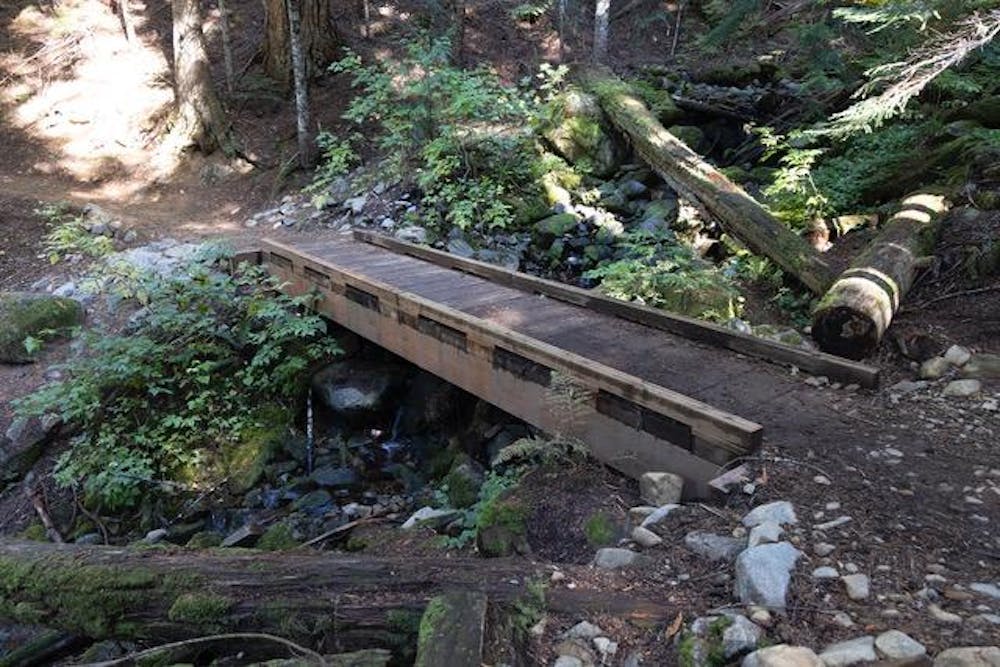 A wooden bridge over a rocky stream on the Annette Lake Trail in North Bend, Wash., on Oct 11, 2024. This trail in the Mount Baker-Snoqualmie National Forest is a 7.5 mile hike. // Photo courtesy of USDA Forest Service- Pacific Northwest Region