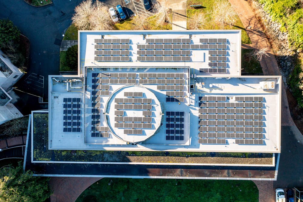 SMATE’s solar panels can be seen in its entirety on Jan. 17, 2025, in Bellingham, Wash. The panels expand nearly the whole roof. // Photo courtesy of Luke Hollister