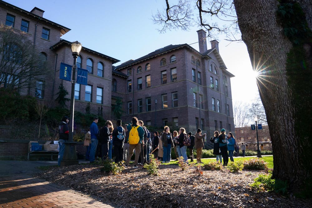 Protestors prepare outside of Old Main on Friday, Jan. 24, at Western Washington University in Bellingham, Wash. Soon, they will deliver their letters. // Photo by Eli Voorhies