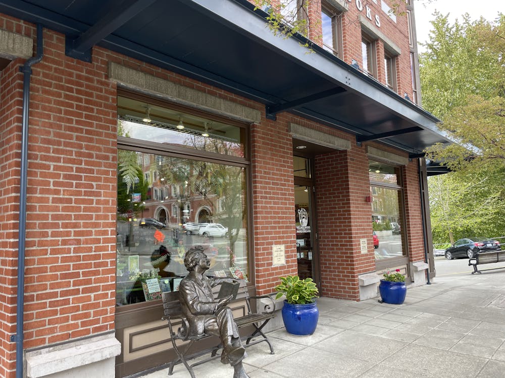A statue of Mark Twain sits in front of Village Books in Fairhaven on May 2 2025. Twain himself visited Fairhaven in August 1895. // Photo by Kaitlyn Ward