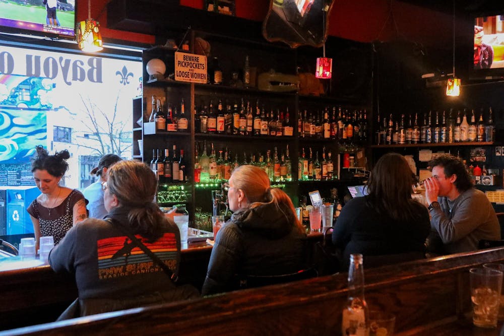 Customers seat themselves at the Bayou On Bay bar on Feb. 13, 2025, in Bellingham, Wash. Customers enjoy drinks handmade and mixed right in front of them. // Photo by Jackson Kelly