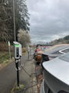 The electric vehicle charging station in Parking Lot 12G outside Fairhaven College supports students and staff who commute via electric vehicles over gas-powered options. This investment in clean transportation infrastructure reflects Western’s Sustainability Action Plan commitment to cutting campus emissions. // Photo by Karsin Hutchins