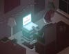 An illustration of a student sitting at their desk, tempted by the idea of using artificial intelligence platforms for their coursework. At Western Washington University, many professors prohibit the use of AI platforms such as ChatGPT for assignments. // Illustrated by Julia Chapman