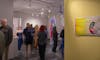 A group gathers to look at art during the “I Remember Being an Egg” exhibit reception in the Fine Arts Building on Western’s campus in Bellingham, Wash., on March 4, 2026. The exhibit features a wide variety of mediums and themes. // Photo by Katherine Rogers