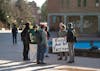 John Savage, or the Red Square Preacher, has a discussion with students on Western Washington University’s campus in Bellingham, Wash. on Feb. 26, 2026. Savage is known to street preach in Red Square; his sign reads: ‘Repent and be forgiven’. // Photo by Raleigh Nolan