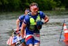 Decked out in red, white and blue, a team rushes onto the riverbank to conclude the canoe leg of Ski to Sea on May 25, 2025. The canoe leg is the longest event in the race, with the fastest team finishing in just under two hours. // Photo by Caitlin Grygorcewicz