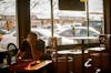 A customer sits alone at a table at Cafe Adagio on Feb. 6, 2024 in Bellingham, Wash. Solo diners can offer a brief pause in a shift often spent juggling multiple drinks and tip-driven expectations. // Photo courtesy of Griffin Rinauro