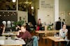 Customers fill tables at Makeworth Coffee Roasters on Jan. 14, 2024 in Bellingham, Wash. The cafe’s large windows fill the space with natural light creating a bright, welcoming atmosphere for customers during the day. // Photo courtesy of Griffin Rinauro