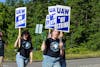 WAWU picketers rally outside the Wade King Student Recreation Center at WWU on May 28. They have been on the picket line since 5 a.m. // Photo by Jae Ranney