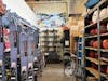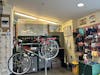 A bike waiting to be worked on inside the WWU Outdoor Center on April 28, 2025. Behind the bike are maps and tools while to the right hang helmets and tires. // Photo by Quincy Koch