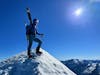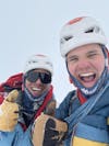 Stu Johnson and his friend Max Bond take a selfie on the first winter summit of Mount Spickard on March 7, 2023. Mount Spickard lies in the Chilliwack Mountains. // Photo courtesy of Stu Johnson