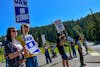 WAWU picketers rally outside the Wade King Student Recreation Center at WWU on May 28. They have been on the picket line since 5 a.m. // Photo by Caitlin Grygorcewicz