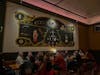 Full tables, busy with conversation at the back of the Temple Room in Bellingham, Wash., on April 11, 2025. The large mural above the guests was hand-painted by the bar’s owner, Johnny McIntyre. // Photo by Quincy Koch