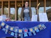 A booth promoting Denim Day is set up featuring WWU Survivor Advocate Deidre Evans at Western Washington University on April 30, 2025. Denim Day is observed annually to raise awareness about sexual assault and support survivors. // Photo by Kaitlyn Ward
