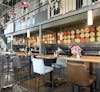 An array of tables with flowers hanging overhead in the main dining area of Soho Asian Kitchen & Bar in Bellingham, Wash., on April 16, 2025. The new restaurant occupies the former K-Pop Chicken & Beer space, offering the only dim sum in the city. // Photo courtesy of Madison Linney