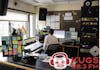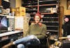 Sean Atkins, the KUGS sound engineer sitting in his office at the Viking Union in Bellingham, Wash., on Feb. 20, 2026. He is responsible for maintaining equipment and training new DJs and recording artists in the studio. // Photo by Katherine Rogers