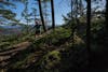 A runner descends the Chuckanut Ridge Trail during the Chuckanut 50k on Mar. 16, 2024. The middle 30 kilometers of the race takes place along the Chuckanut Mountain Ridge. // Photo by Ben Groenhoet, courtesy of Krissy Moehl