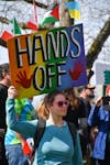 On Saturday, April 5, 2025, over 4,000 people gathered for the nationwide “Hands Off!” rally in front of Bellingham City Hall. The protest was one of over 1,300 across the nation. // Photo by Caitlin Gryorcewicz