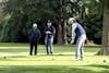 David Sibbett reads the green to prepare for a putt at Bellingham Golf and Country Club on April 10, 2025. David went on to make the putt with ease. // Photo by Chayton Engelson
