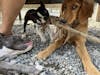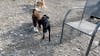 Three dogs playing under an outdoor table at Paws For A Beer in Fairhaven on Sept. 10, 2023, in Bellingham, Wash. One dog is lying down while two other dogs play with a rope. // Photo courtesy of Rylan Schoen