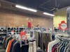 The inside of Y’s Buys Thrift Boutique on Feb. 13, 2025, in Bellingham, Wash. There are racks of various clothing items with signs reading “50% off.” // Photo by Sophia Raymond